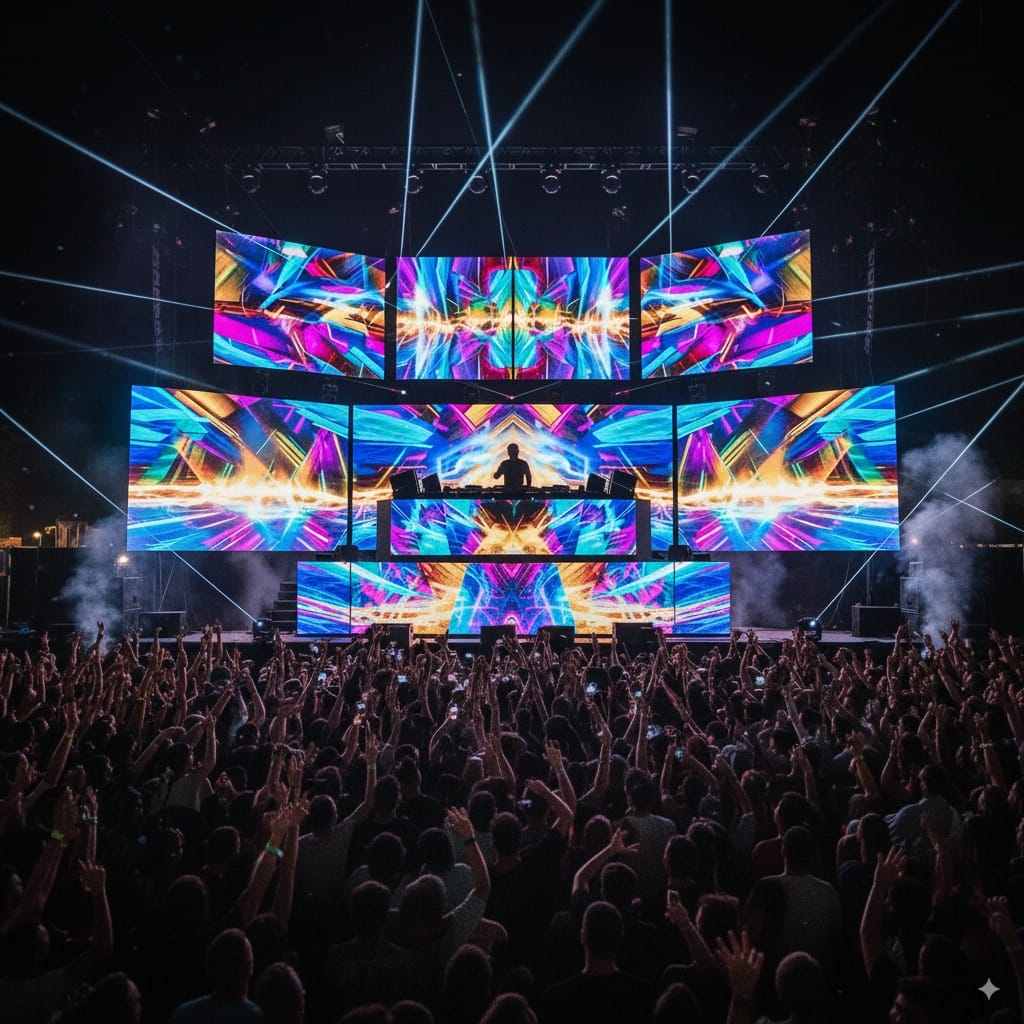 Los mejores DJs del mundo usan pantallas LED para crear ambientes inmersivos. Con altos refresh rates y procesadores de video de última generación, los visuales reaccionan en tiempo real a la música, sincronizando cada destello y animación con los beats. Artistas como Tale of Us ya lo hacen… y tus mixes también pueden lograrlo con tecnología accesible y de alta calidad.