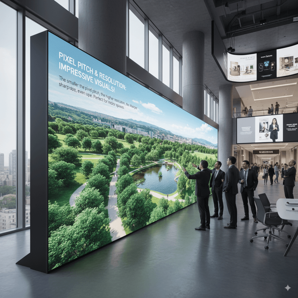 Pixel Pitch y Resolución: ¿Clidad que impresiona? Todo depende del pixel pitch. Cuanto más pequeño es, mayor es la resolución y más nítida se ve la imagen, incluso de cerca. Perfecto para interiores como oficinas en Barcelona o centros comerciales en Ciudad de México.