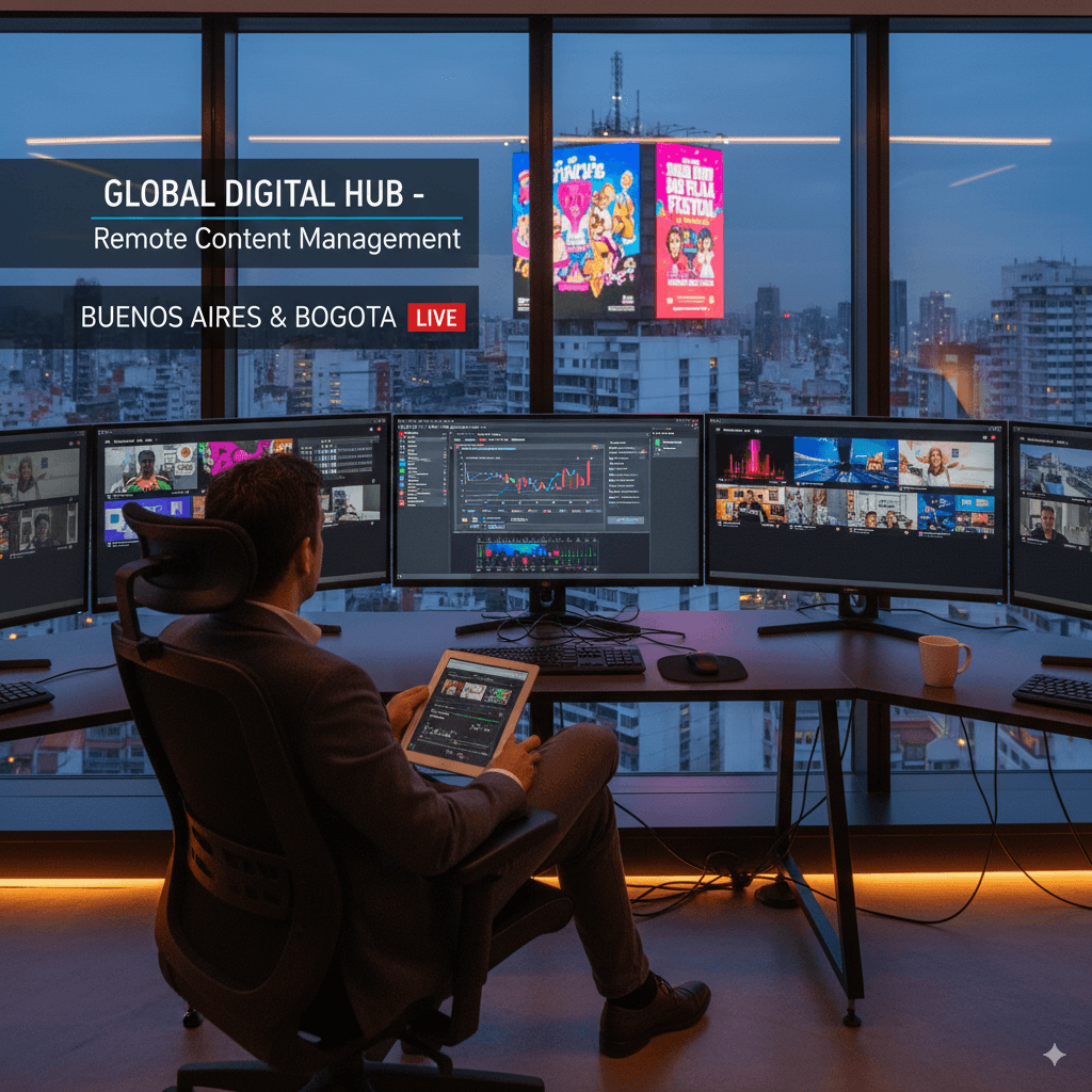Sistemas de Control: Gestionar el contenido de su pantalla LED es pan comido. Con procesadores de video y tarjetas de control eficientes, puede manejar múltiples pantallas a la vez, en tiempo real o de forma asíncrona, cargando el contenido previamente para controlarlo incluso remotamente desde Buenos Aires o Bogotá.