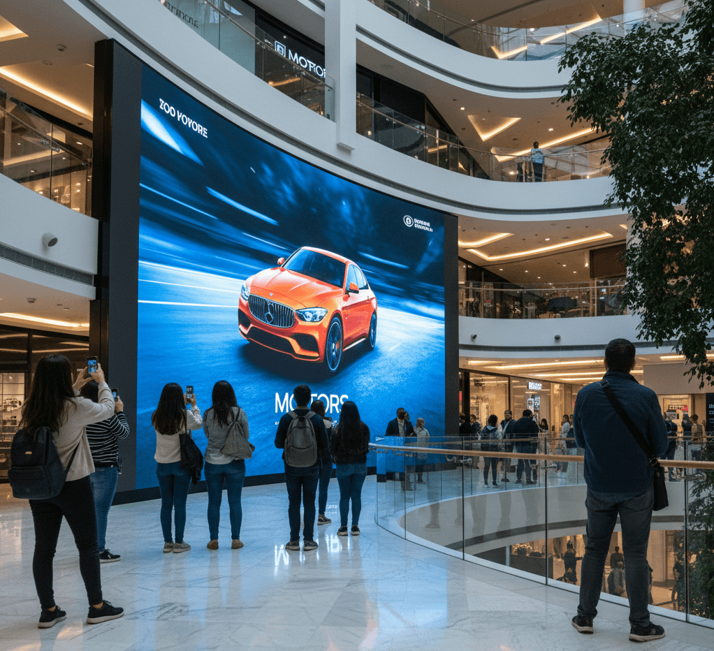 • Centros comerciales y plazas públicas: señalización y promociones con alta visibilidad.