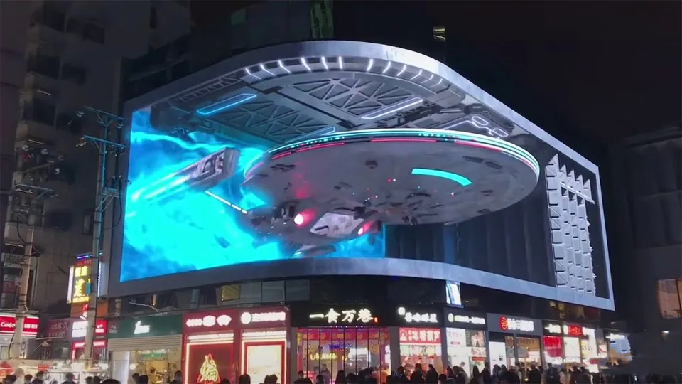 - 3D LED (da HC Industry): Usa camadas de LEDs para profundidade. Ideal para painéis gigantes, estádios e outdoors. Brilho intenso, mas custo elevado.