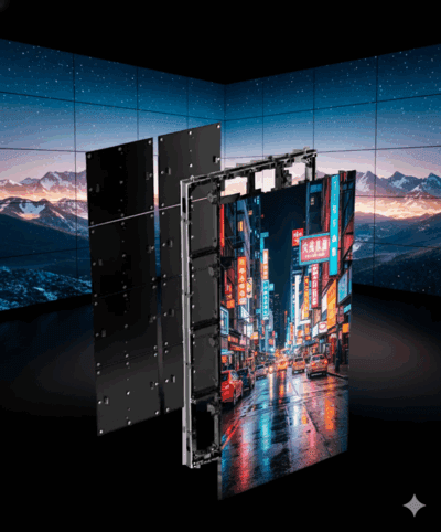 Una pantalla LED delgada se percibe más como un lienzo digital flotante que como un equipo industrial.